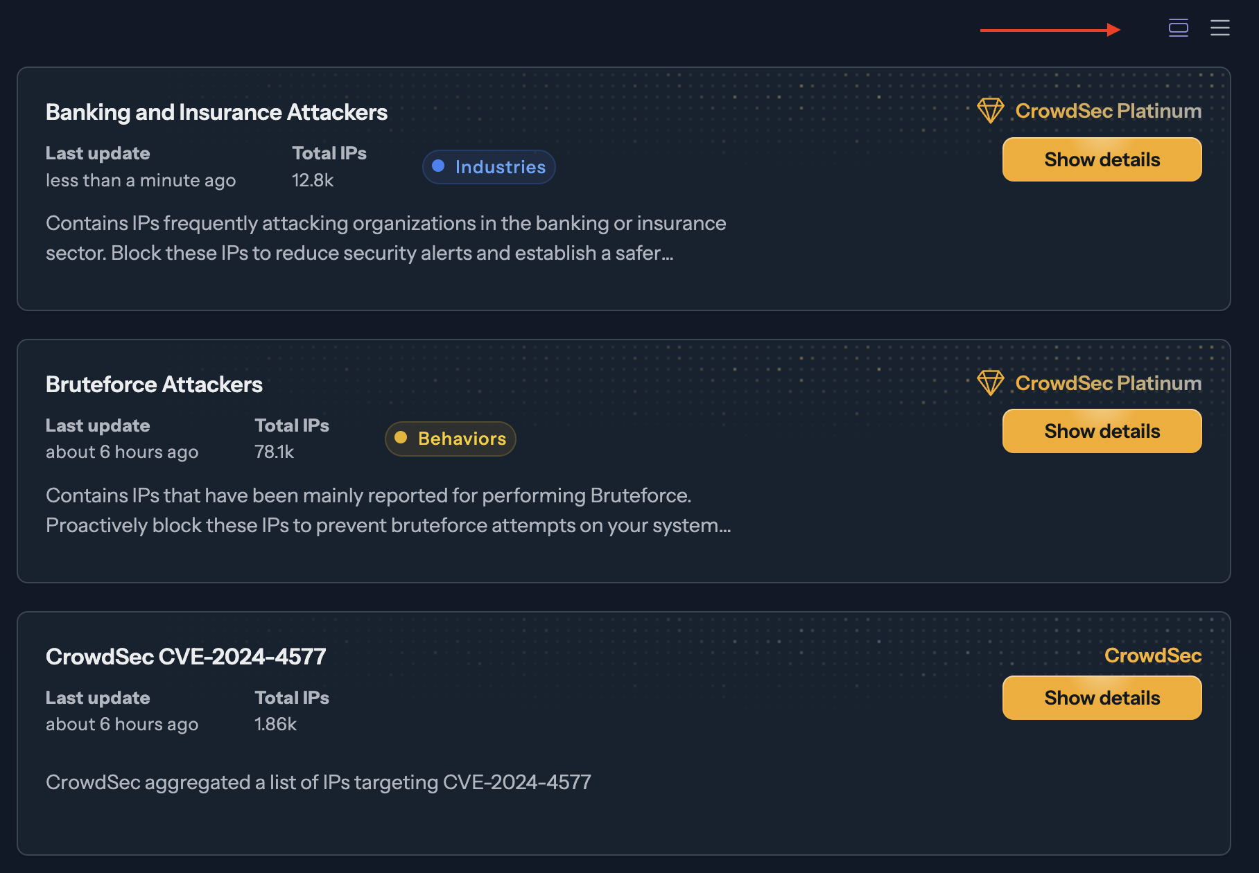 To provide blocklists tailored to each need, CrowdSec has a wide catalog of blocklists, encompassing a variety of threat types and sources. This diversity allows to select and implement blocklists that best match their specific security requirements. The search page in the CrowdSec Console provides a centralized interface to explore, subscribe, and manage blocklists tailored to enhance your organization’s security posture. This page allows to browse all available blocklists, find the ones most relevant to your needs, and activate them to protect your infrastructure.